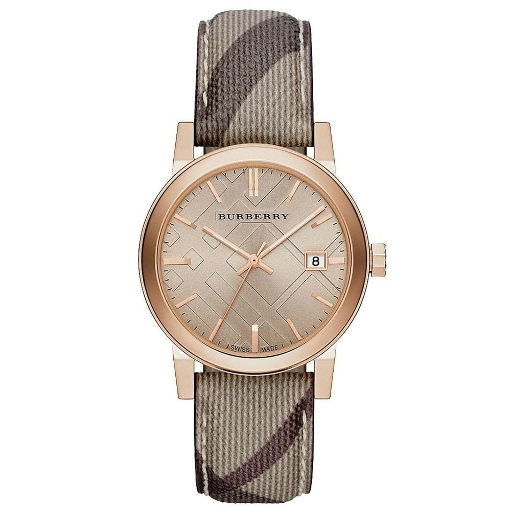 Burberry The City Watch Ladies Rose Gold Haymarket Leather BU9236