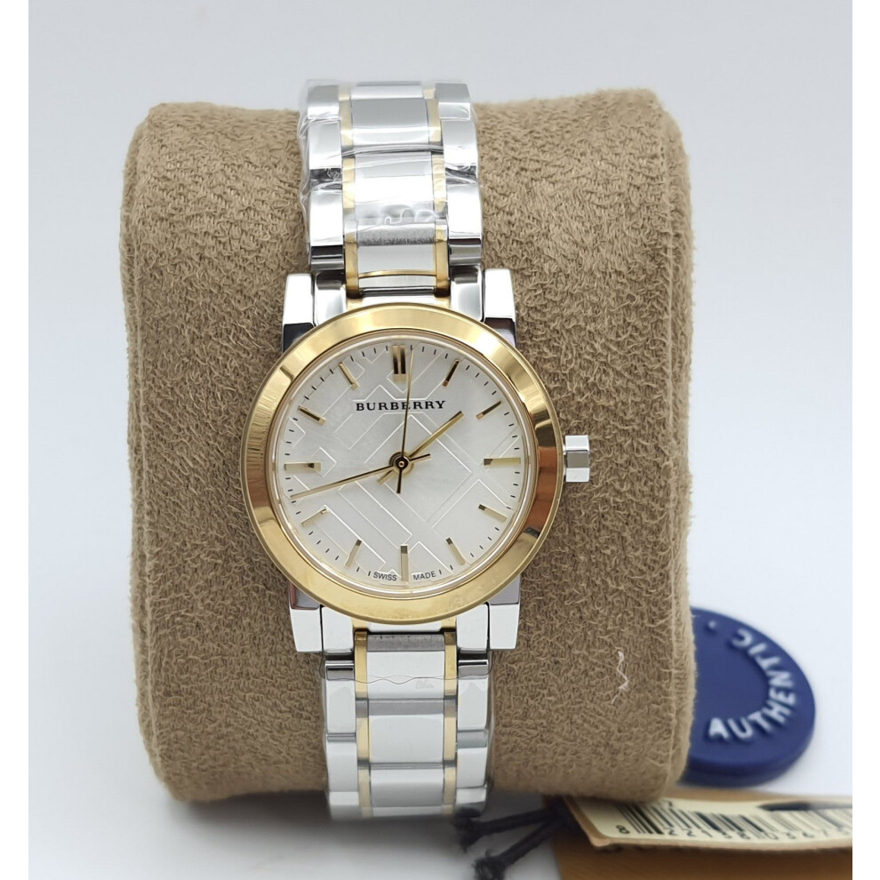 NEW BURBERRY THE CITY BU9003 YELLOW GOLD AND WHITE TONE LADIES WATCH