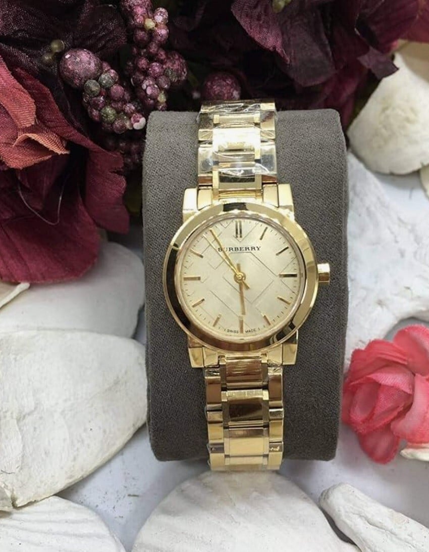 BURBERRY WOMENS WATCH STEEL GOLD STRAP & GOLD DIAL BU9227 THE CITY