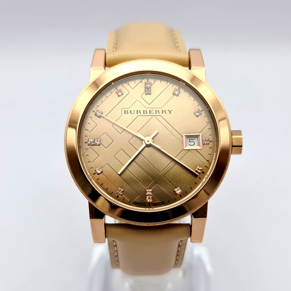 Burberry Authentic Burberry The City Precious LUXURY DIAMONDS Rose Gold Dual Tone Watch Women's Textured Dial BU9214, Bracelet Type