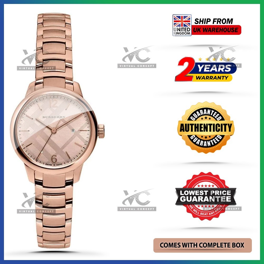 New BURBERRY BU10116 The Classic Rose Gold Dial Steel Strap Womens Watch 32mm