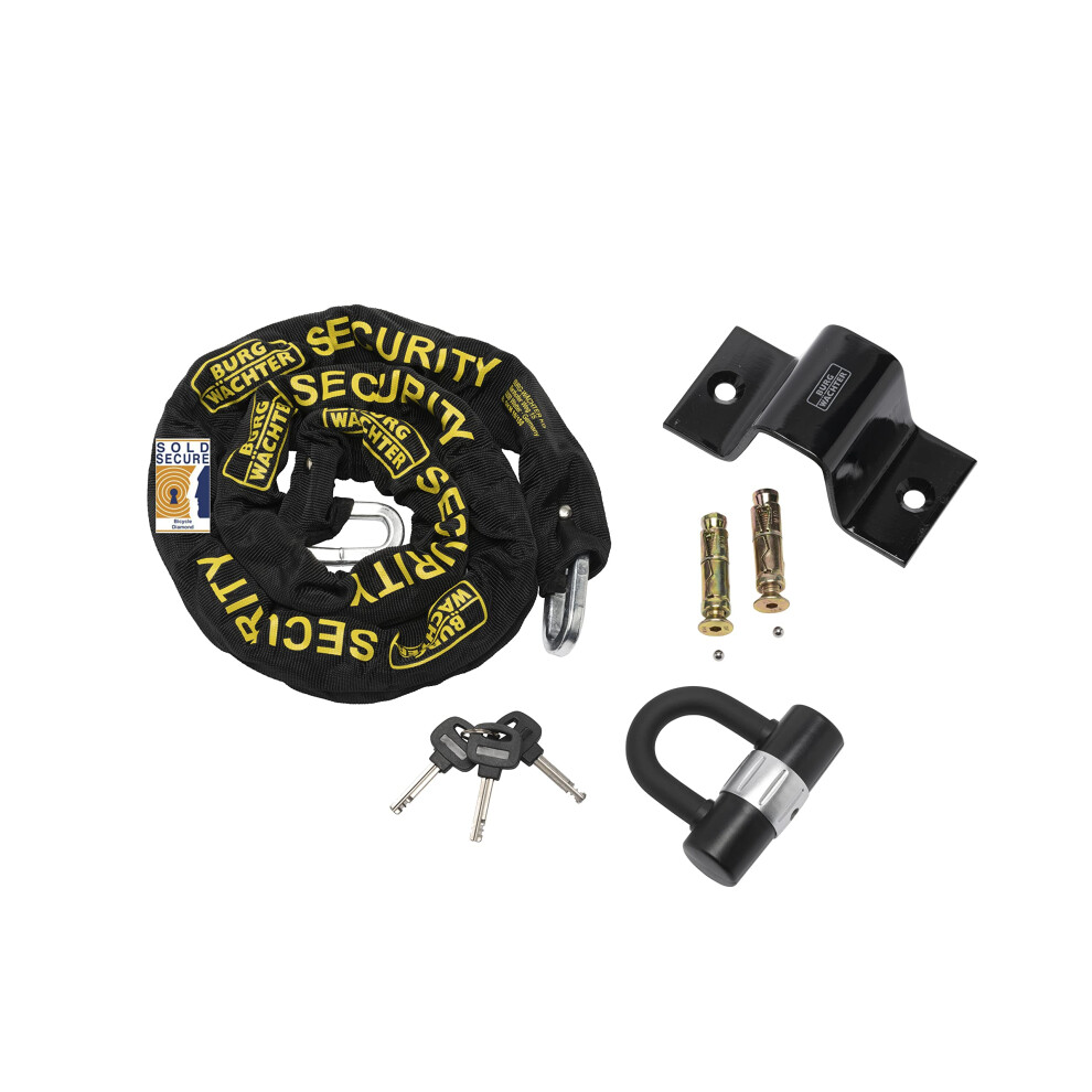 Burg Wachter Sold Secure Diamond 12mm 1M Bike Chain & Lock Kit
