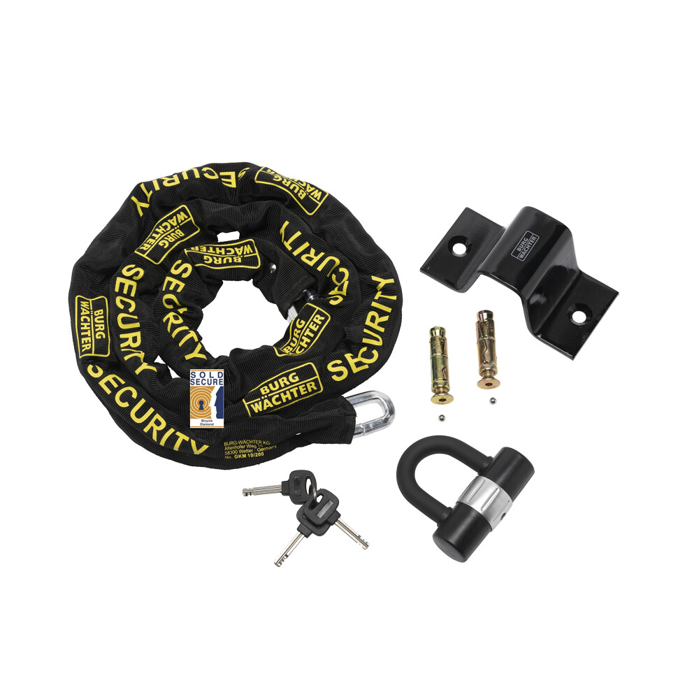 Burg Wachter Sold Secure Diamond 12mm 2M Bike Chain & Lock Kit