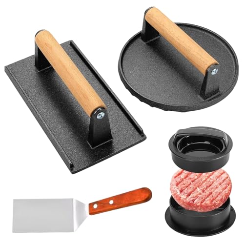 Smash Burger Press - Hamburger Smash less, Iron Smash Bacon Press, Meat Steak | Steak Accessories Iron Smash Bacon Press with Wooden Handle for Griddle Sandwiches Nonstick Bread for Camping Chef
