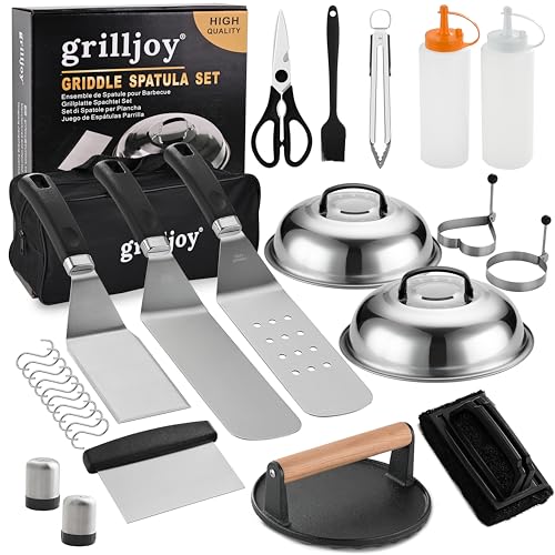grilljoy Professional Griddle Accessories Kit for Blackstone, Smash Burger Kit with Grill Spatula Set, Smash Burger Press, Basting Cover, 28PCS Flat Top Grill Accessories for Plancha Grill Cooking
