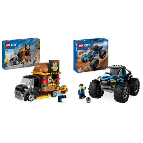LEGO City Burger Van, Food Truck Toy for 5 Plus Year Old Boys & Girls, Vehicle Building Toys & City Blue Monster Truck Toy for 5 Plus Year Old Boys & Girls, Vehicle Set