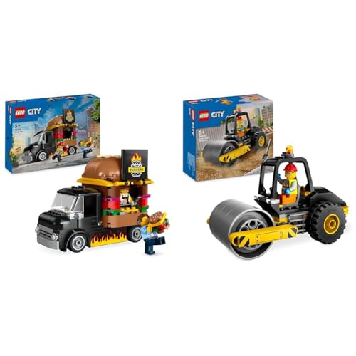 LEGO City Burger Van, Food Truck Toy for 5 Plus Year Old Boys & Girls, Vehicle Building Toys & City Construction Steamroller, Vehicle Toy for Boys, Girls & Kids aged 5 Plus Years Old