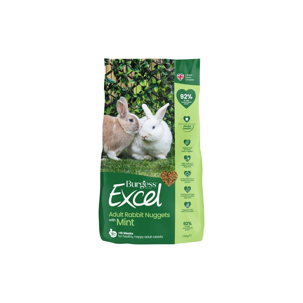 Burgess Excel Rabbit Food with Mint, 1.8kg â Adult Rabbit Nuggets â Hi