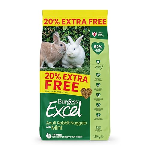 Burgess Excel Rabbit Food with Mint, 1.8kg – Adult Rabbit Nuggets – High Fibre, Mint Pellets