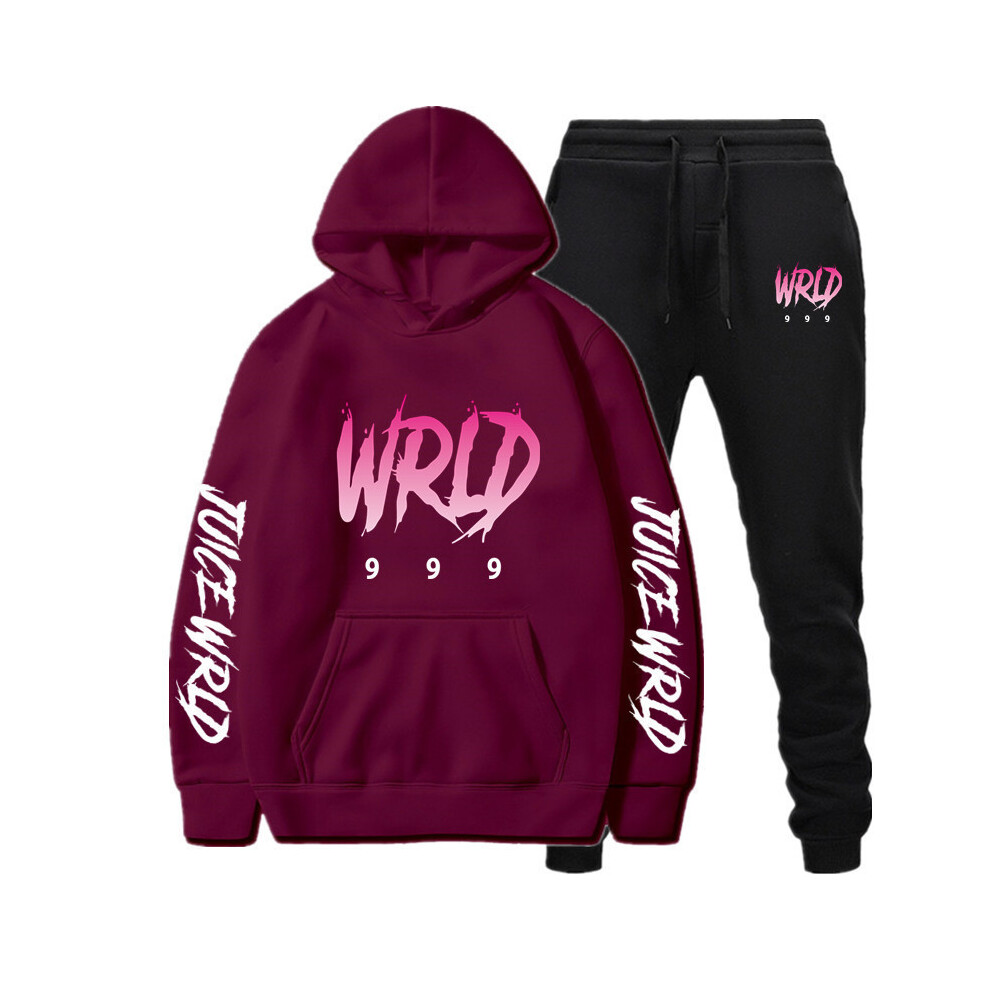 (Burgundy 1, XL) Singer Juice Wrld Loose Fit Hoodie Set for Men and Women