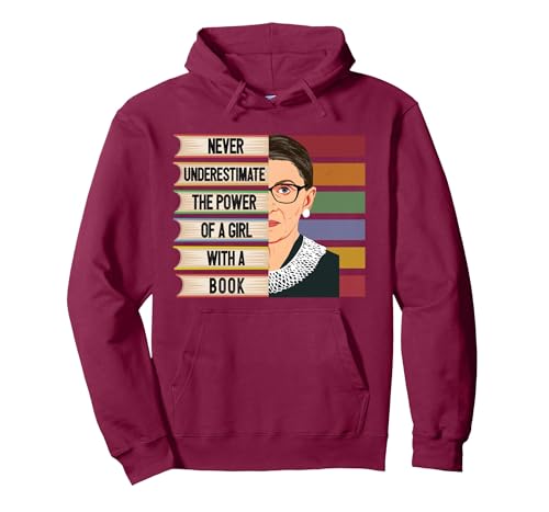 Feminist Ruth Bader Ginsburg RBG Quote Girl With Book Women Pullover Hoodie, Adult Unisex, Burgundy, Small