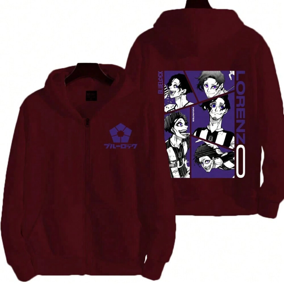 (Burgundy, S) Blue Lock Don Lorenzo Men Zipper Hoodie Spring Autumn Women Sweatshirt 2024 New Cartoon Japan Anime Couple Jackets Coat