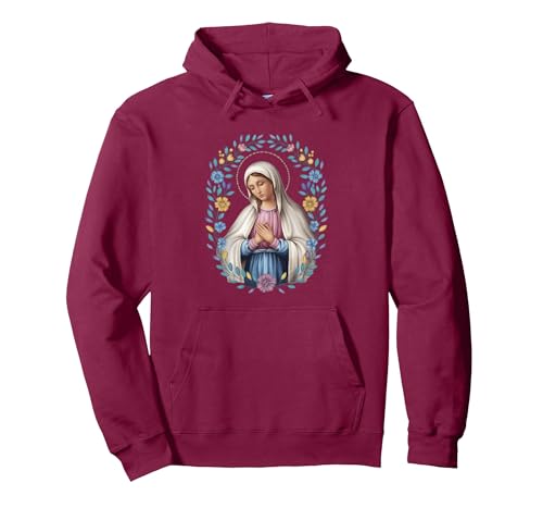 Mary Catholic Saint Men Women Kids Faith Pullover Hoodie, Adult Unisex, Burgundy, Small
