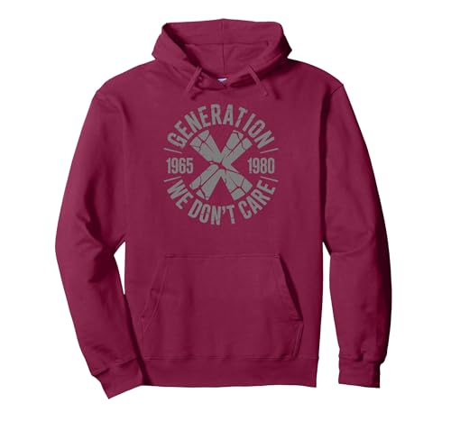 Generation X We Don't Care | Funny Gen-X Men Women Pullover Hoodie, Adult Unisex, Burgundy, X-Large