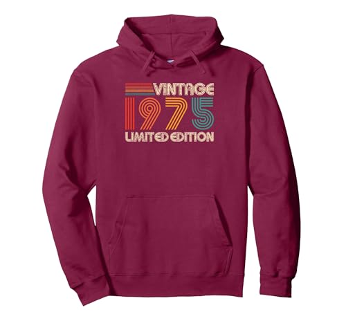 Vintage 1975 Limited Edition Classic 1975 Men Women Vintage Pullover Hoodie, Adult Unisex, Burgundy, Medium