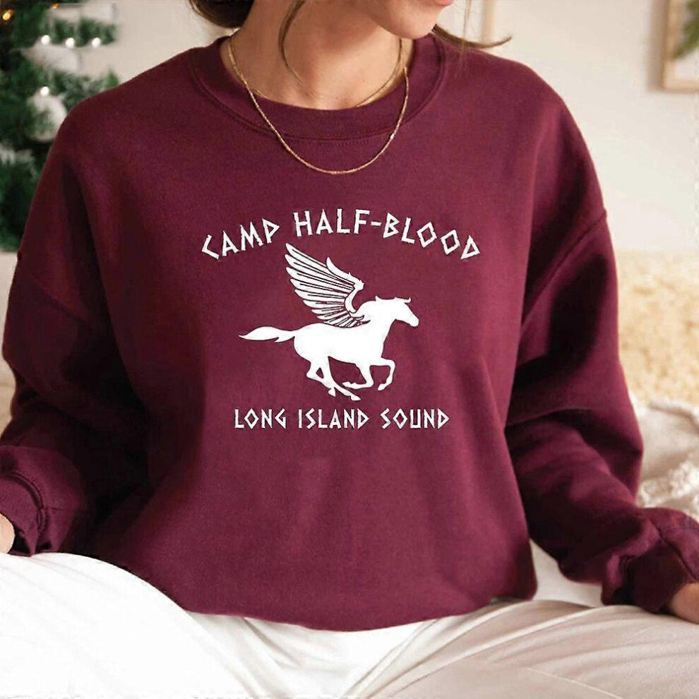 (burgundy, M) Camp Half Blood Sweatshirt Percy Jackson Hoodie Women Long Sleeve Pullover
