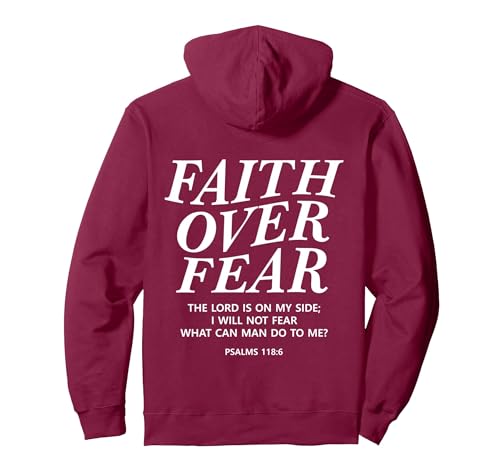 Faith Over Fear Bible Verse Christian Back Print Men Women Pullover Hoodie, Adult Unisex, Burgundy, Large