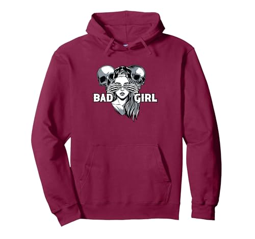 Bad Girl | Skeletons | Girls Women Pullover Hoodie, Adult Unisex, Burgundy, Large