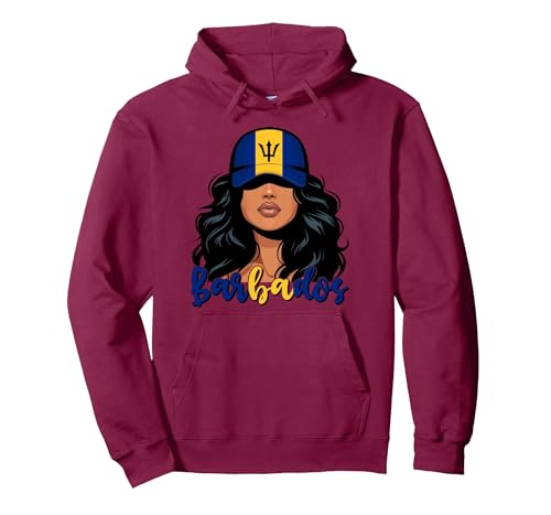 Bajan Girl Barbados Flag Proud Barbadian Women Pullover Hoodie, Adult Unisex, Burgundy, Large