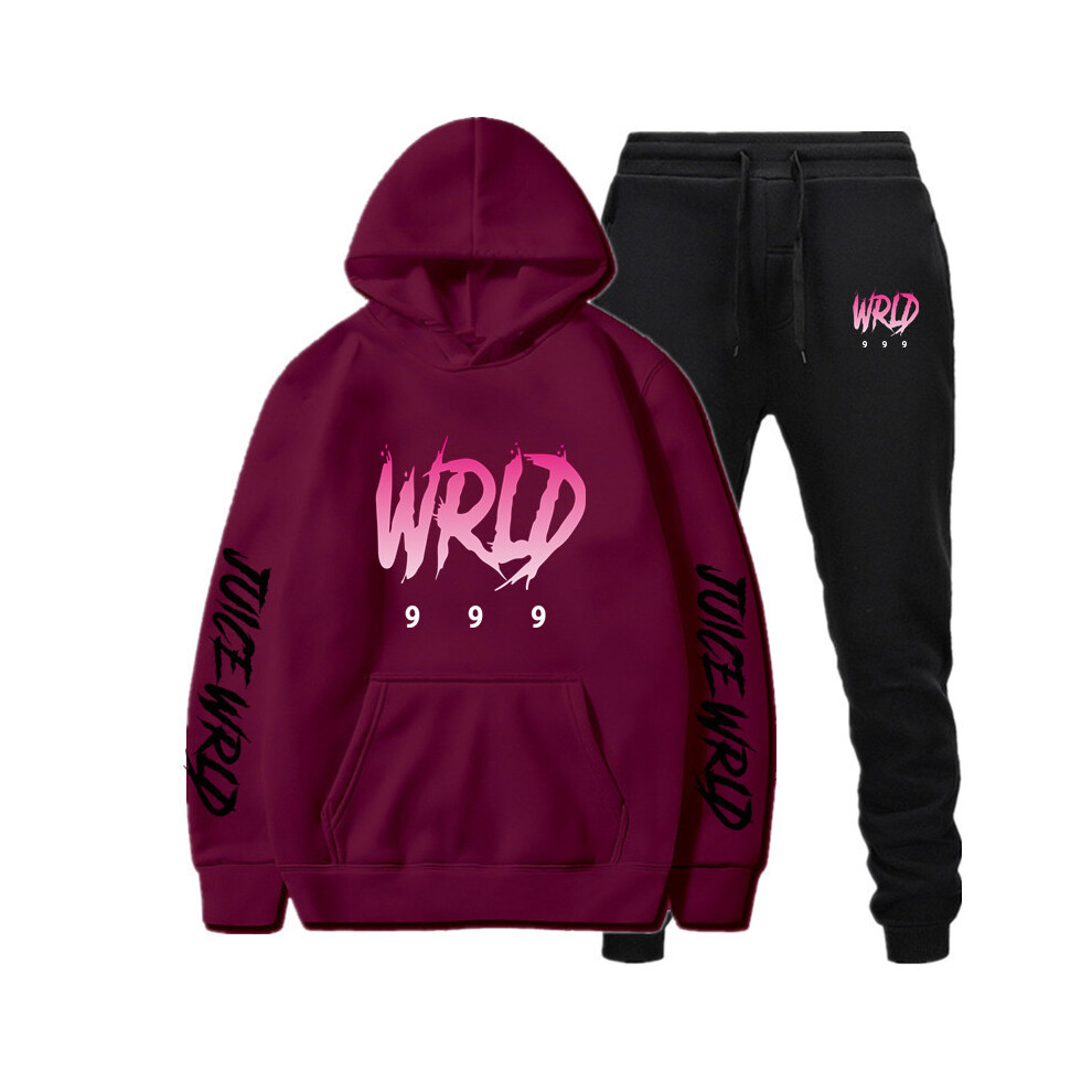 (Burgundy 2, L) Singer Juice Wrld Loose Fit Hoodie Set for Men and Women