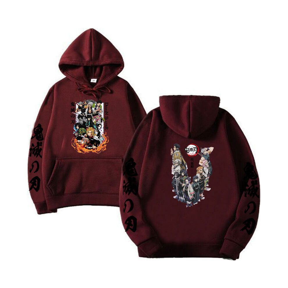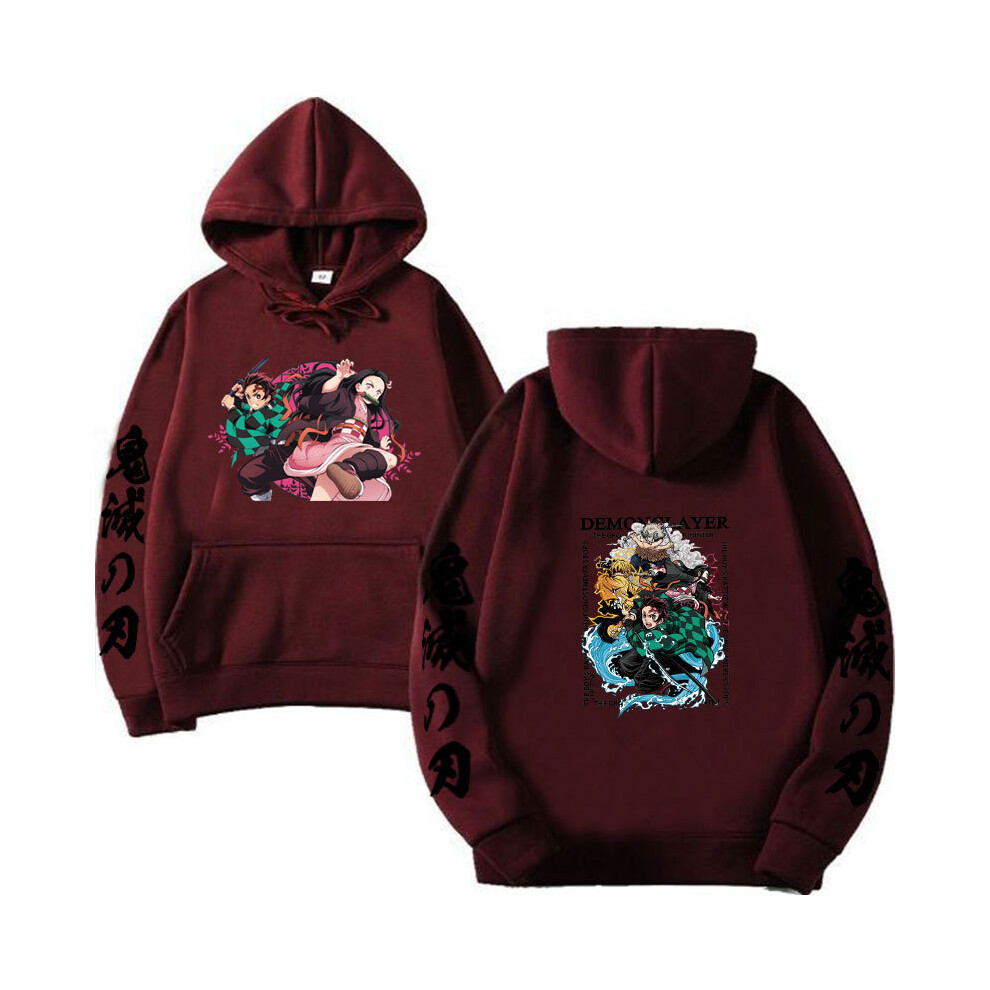(Burgundy - 3, L) Autumn/Winter Anime Devil Hunter Print Men's and Women's Casual Sports Hoodie Loose Hoodie Jacket