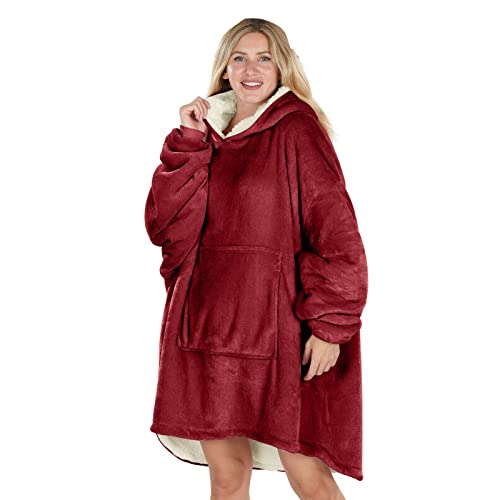 Oversized Hoodie Blanket Women Ultra Plush Fleece with Soft Sherpa Reversible Warm Cosy Comfy Wearable Hooded Giant Sweatshirt Throw for Girls Adults Men Boys Kids Big Pocket (Burgundy Red)