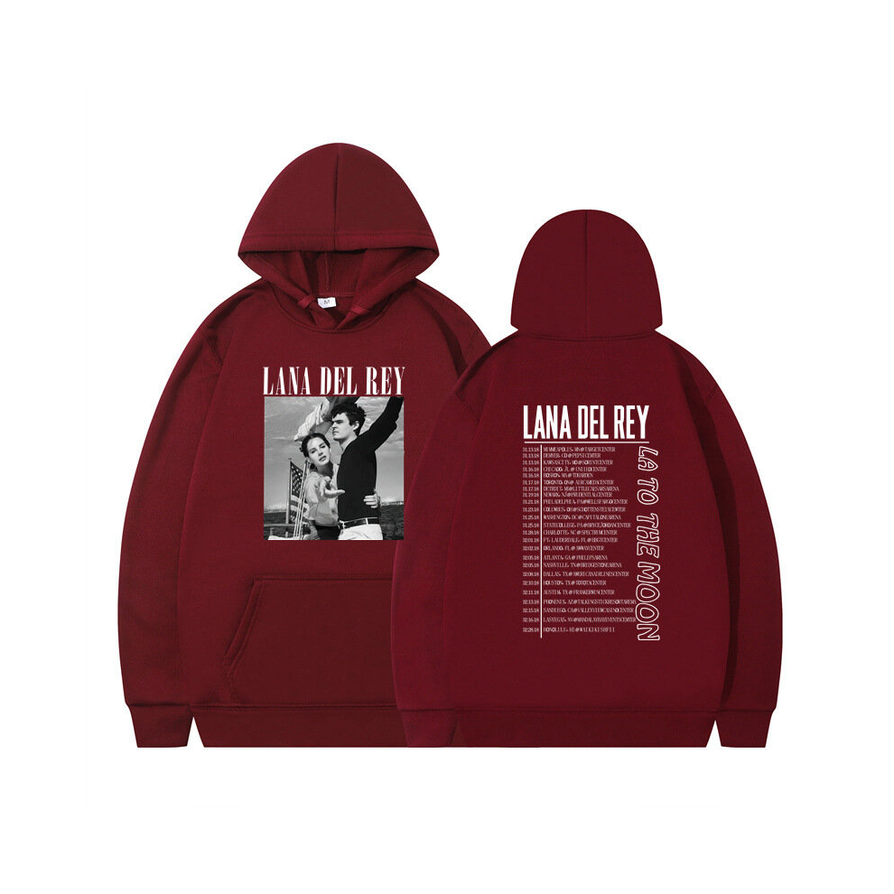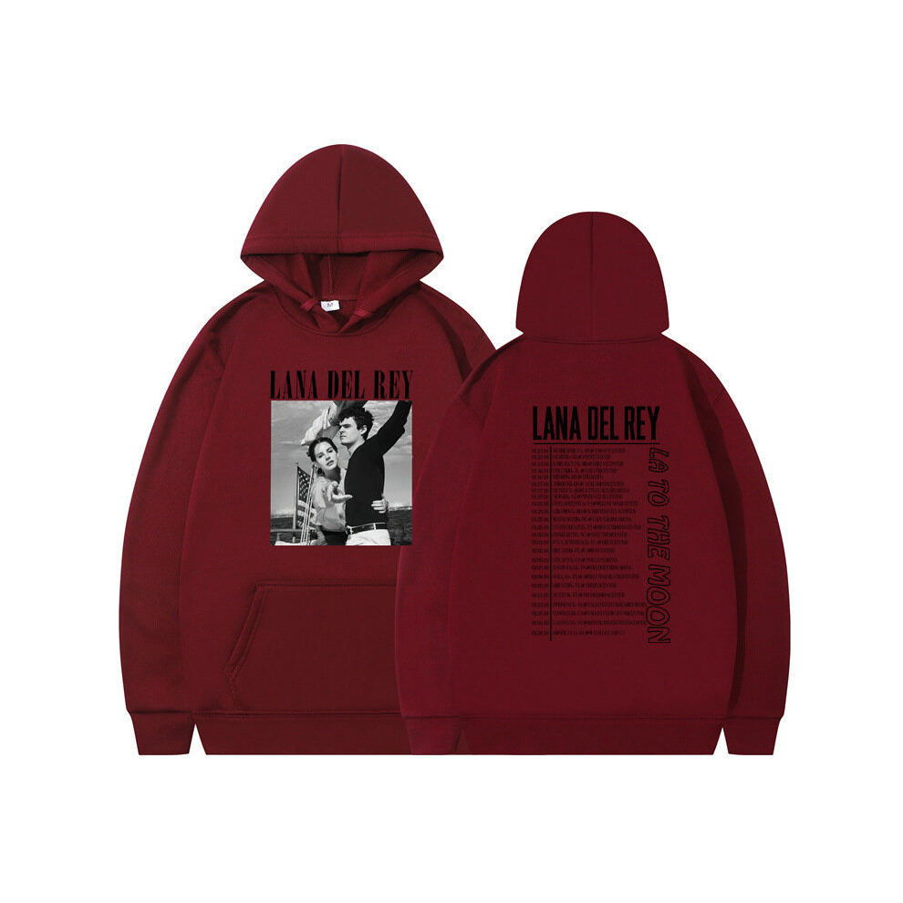(Burgundy + white, 2XL) Hoodie Sweatshirt Men's and Women's Autumn and Winter Couple Tops Loose