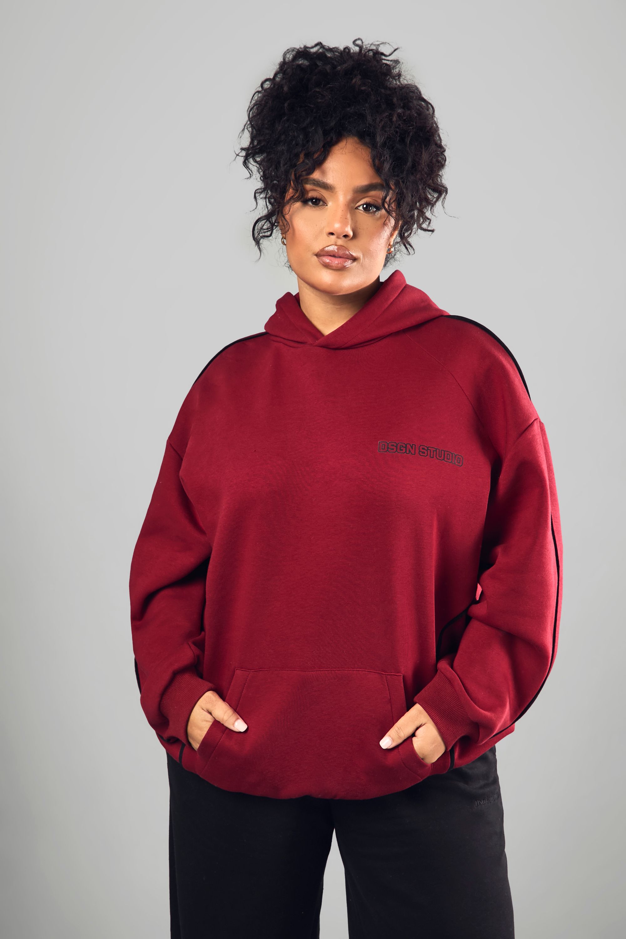Boohoo Womens Plus Sport Stripe DSGN Hoodie - Burgundy Cotton - Size 16 UK