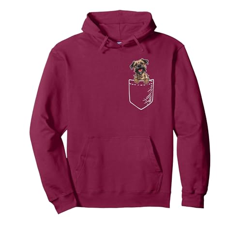 Mens Womens Kids Cute Funny Pocket Border Terrier Lover Pullover Hoodie, Adult Unisex, Burgundy, XX-Large