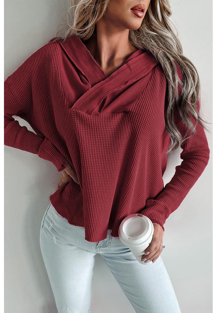 Everyday the Label Womens Waffle Knit Long Sleeve Hoodie - Burgundy - Size X-Large
