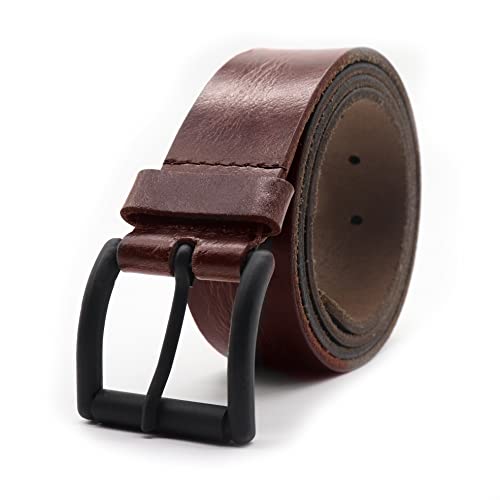 PELLE TORO Hunter Leather Belt for Men, Handmade Mens Belt for Jeans, Work or Casual Wear Cowboy Style (Burgundy, Trouser Sizes 32in - 36in)