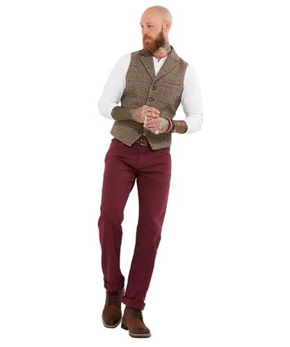 Joe Browns Men's Fashion Chino Style Denim Straight Fit Jeans, Burgundy, Regular Fit, 32L