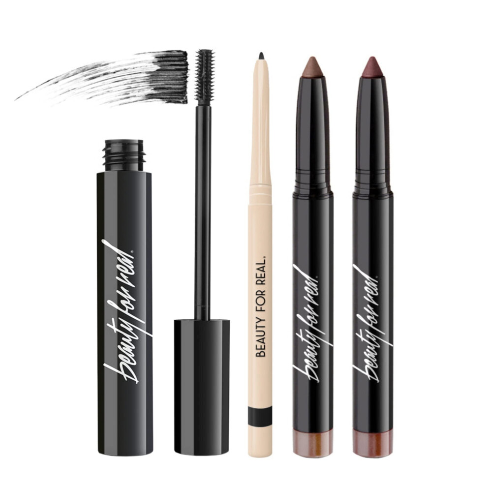 Beauty for Real 4-Play Boxed Eye Set Burgundy - Includes Hi-Def Mascara (Just Black) I-Line 24/7 Eyeliner (Black Magic) and Shadow Stx Eyeshadow in Mi