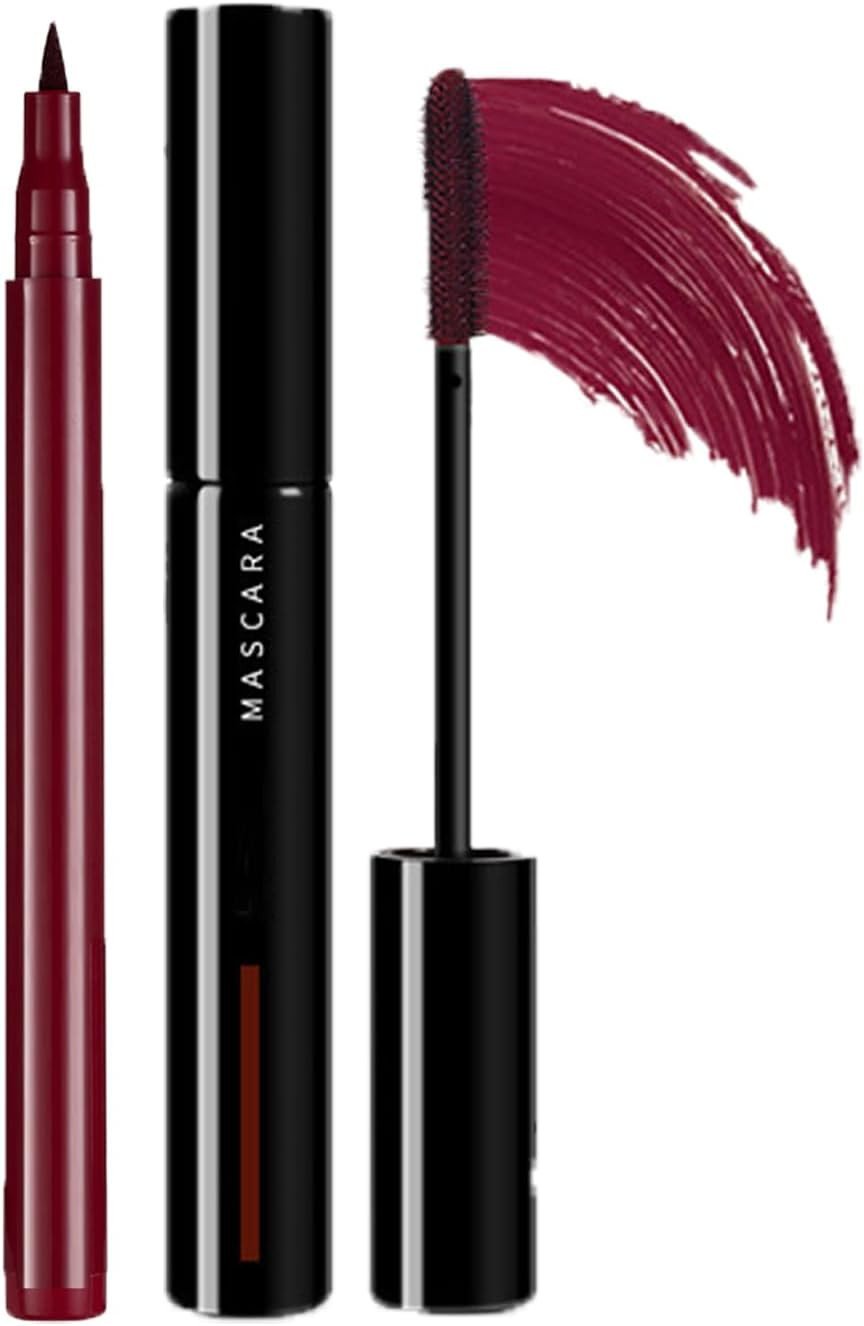 Burgundy Red Mascara and Eyeliner Set, Dark Red 4D Silk Fiber Lashmascara, Long