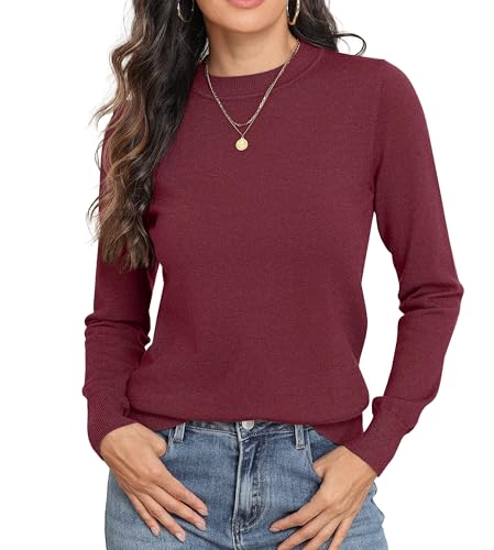GRECERELLE Womens Jumpers Soft Knit Basic Crew Neck Long Sleeve Fall Winter Spring Sweater Tops for Ladies (Burgundy, M)