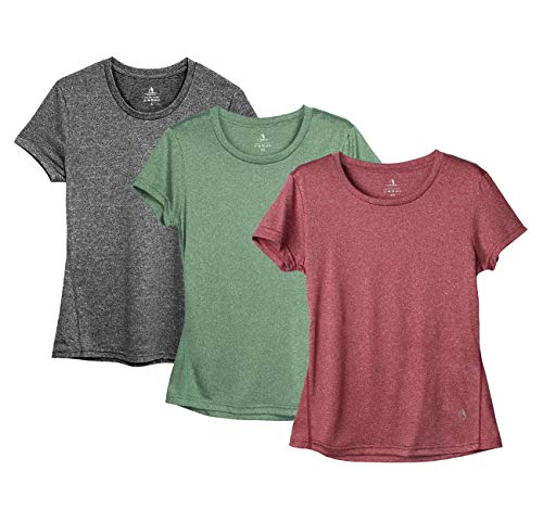 icyzone Women's Workout Running T-Shirt Activewear Yoga Gym Short Sleeve Tops Sports Shirts, 3-Pack (XL, Charcoal/Burgundy/Turf Green)