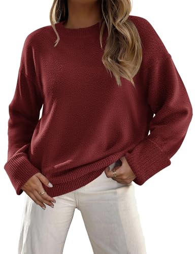 Zeagoo Jumper Women Crew Neck UK Oversized Long Sleeve Sweater Ladies Chunky Knitted Winter Jumpers Fluffy Pullover Womens Autumn Sweaters Tops Burgundy XXL