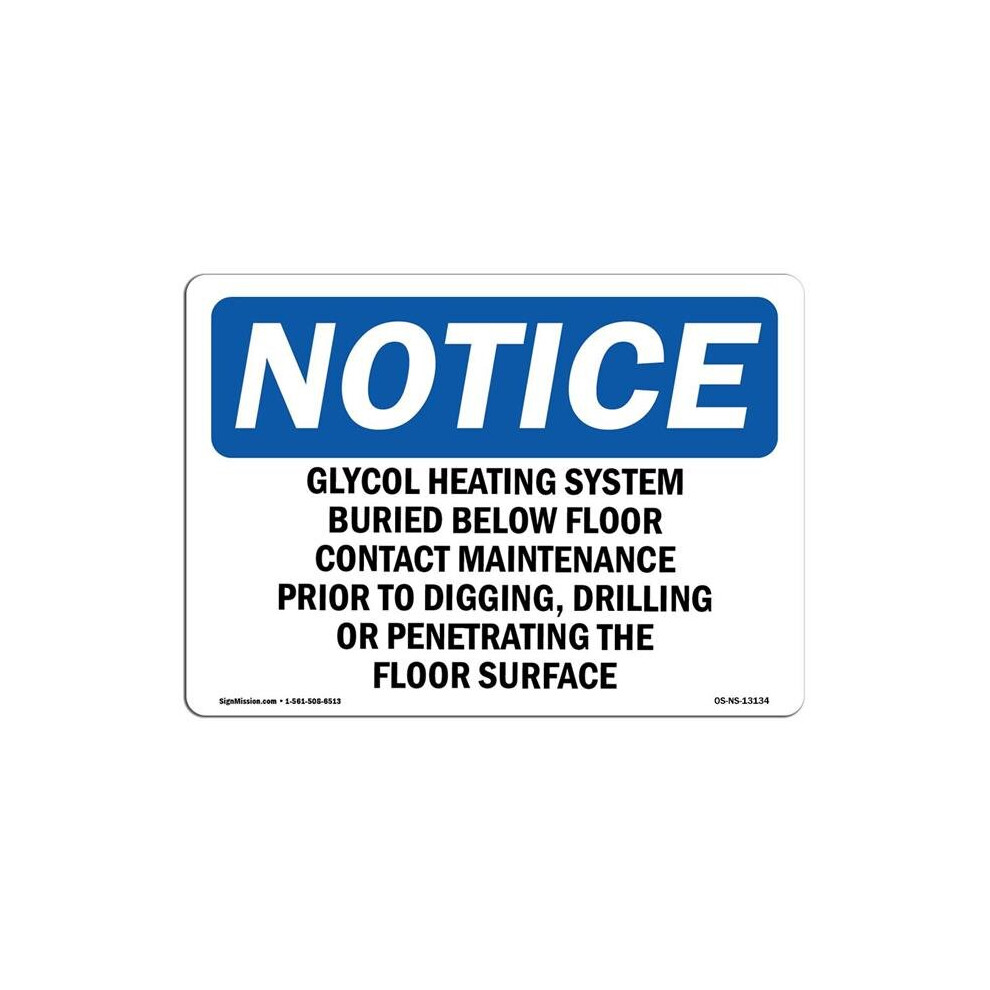 SignMission OS-NS-A-710-L-13134 7 x 10 in. OSHA Notice Sign - Glycol Heating System Buried Below Floor