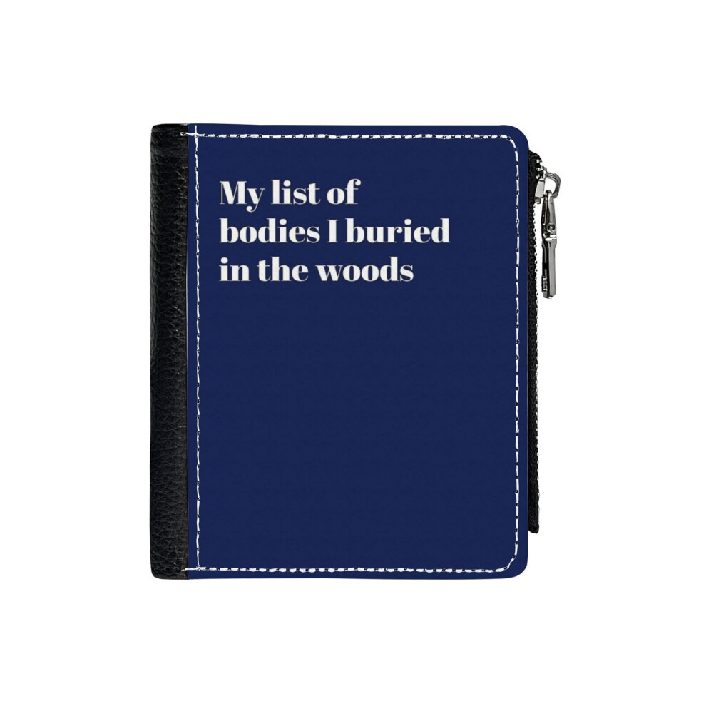 (My List Of Bodies I Buried In The Woods_256) PU Wallet Compact Bifold with Zipper & Multiple Card Coins Slots Black Stylish Durable Graphic Design Pr