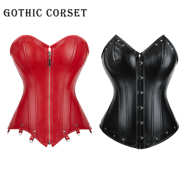 Sexy Women Leather Corset Burlesque Costumes Lace Up Zipper Steampunk Gothic Corset Bustier Overbust Body Shaper Plus Size