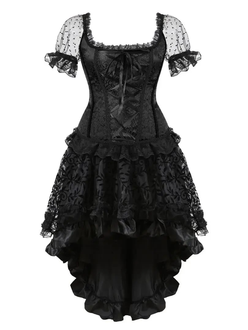 Victorian Sexy Lace Sleeves Exotic Floral Overbust Corset Blouse Burlesque Bustier Top Gothic Vintage Skirt Party Costumes