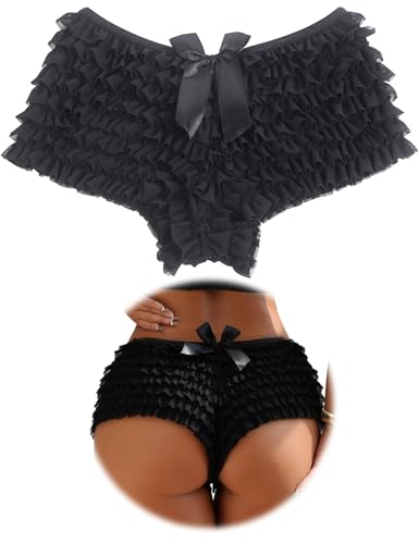 ohmydear Women's Bloomers Ruffle Shorts Lace Frilly Knickers Multi-Layer Micro Hot Pants for Festival Sexy Outfits Burlesque Costumes Plus Size, UK 10 Black