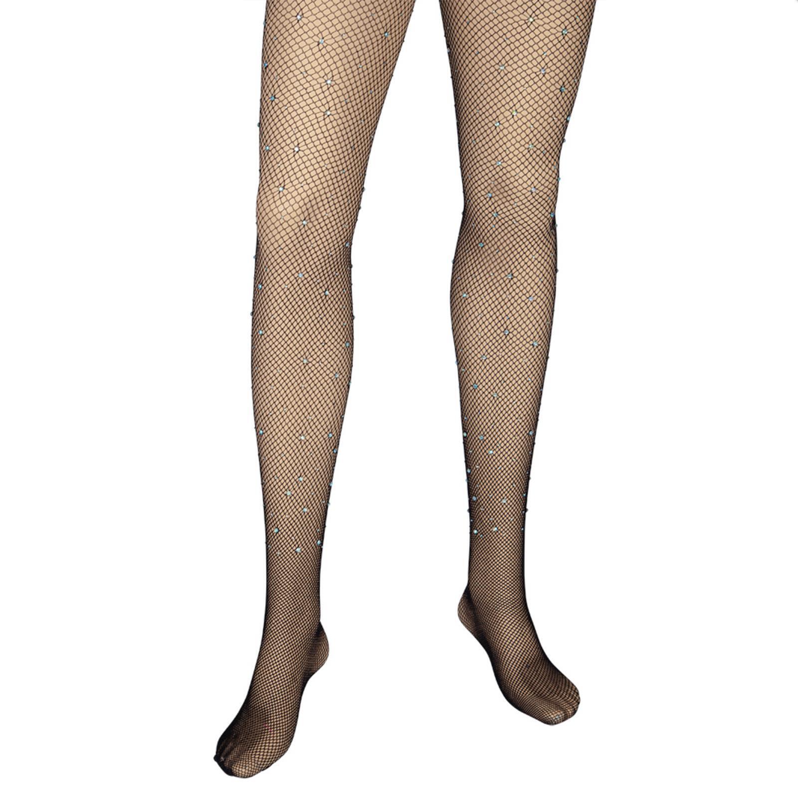Adults Black Fishnet Tights With Sparkling Diamante Jewels Burlesque Fancy Dress