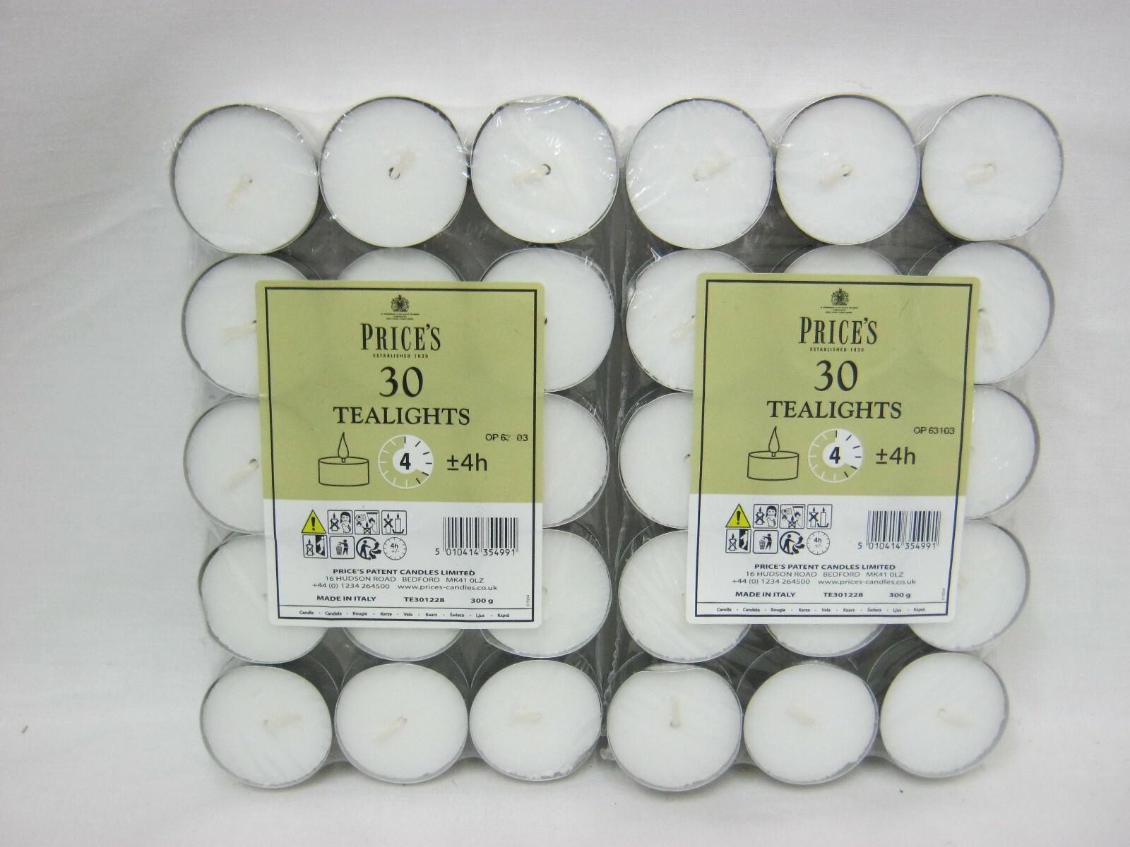 Price's Wax Prices Tealights 4 Hour Burn Time Pack Pk 30 x 2