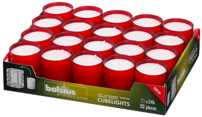 Bolsius Wax Filled Candle Bowls in Red - 75 Hour Burn Bar Lights Pack of 12