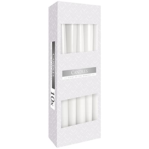 Long-Lasting & Mess-Free Colour-Dipped Taper Candles - 7 Hour Burn, Vibrant Colours (Pack of 10) (Tapered, White)