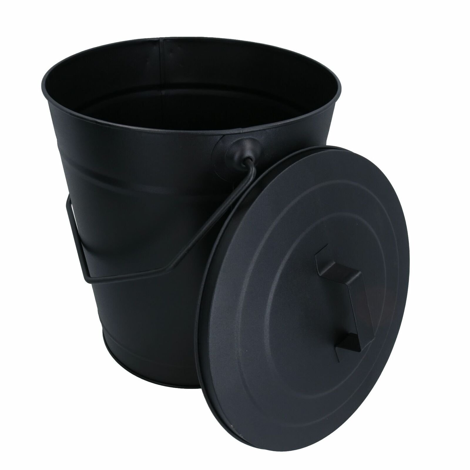 Coal Bucket & Lid Black Metal Ash Tidy Bin Coal Carrier Fire Log Burner Kindling
