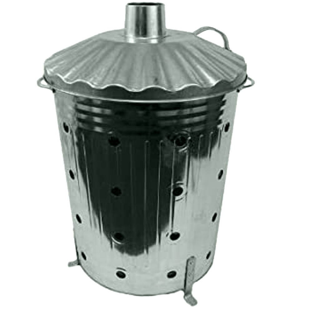 OptiProducts 60 Litre 60L Large Galvanised Metal Incinerator Recycle Garden Rubbish Fire Burning Bin Leaves Wood Burner