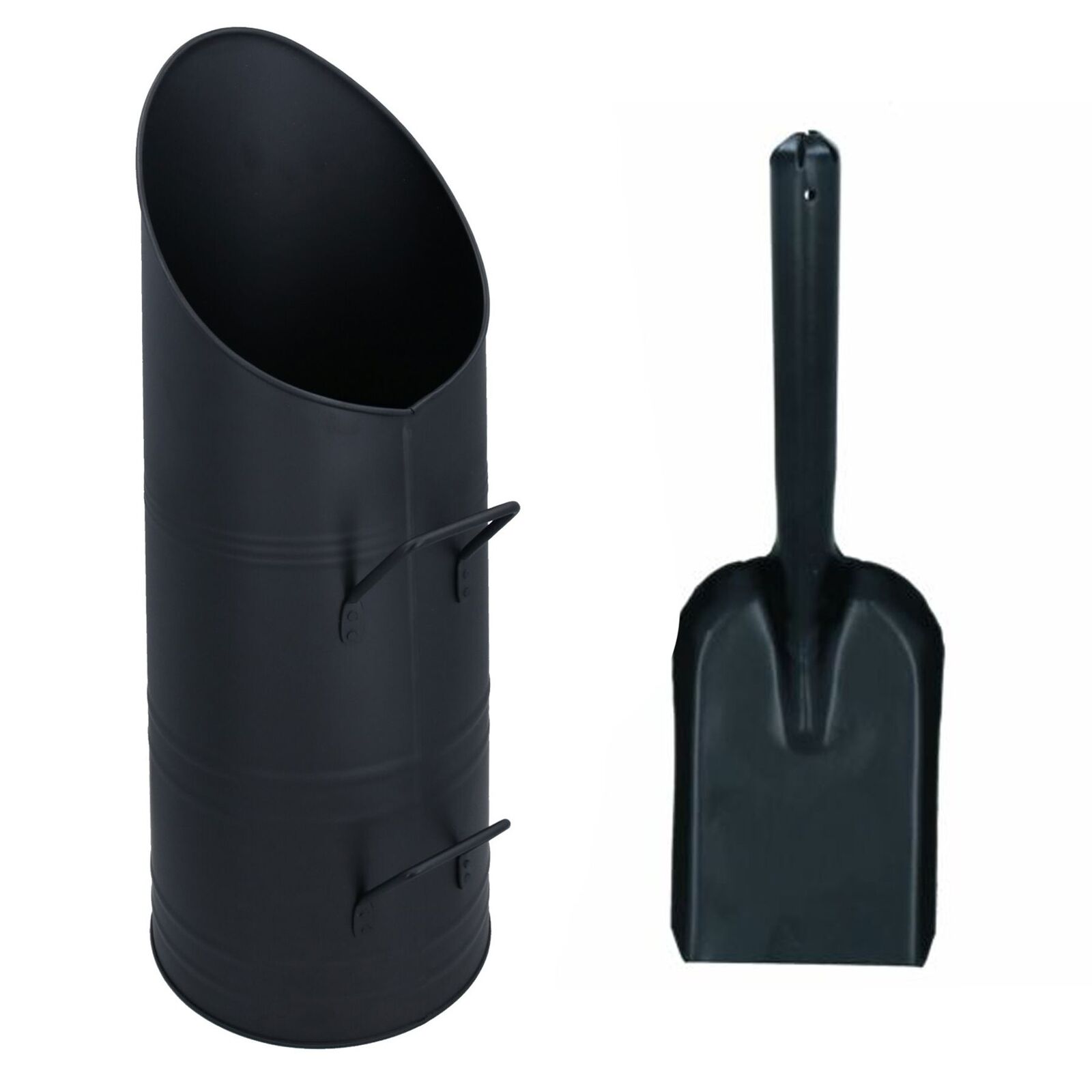 Coal Hod Scuttle Black Metal Bin Coal Carrier Fire Log Burner 56 x 25cm & Shovel
