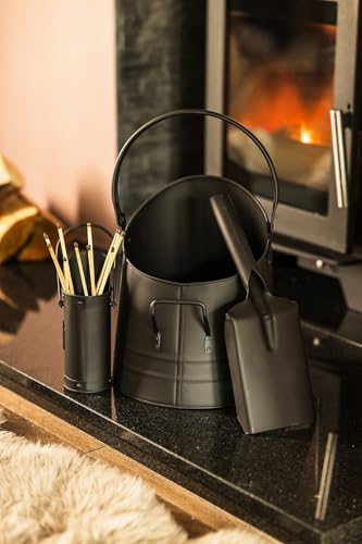 Marco Paul Fireplace Coal Scuttle Bucket Shovel & Match Storage Heavy Duty Fireplace Accessories Ash Bucket Wood Log Burner Fireside Fuel Store Metal Pit Coal Storage Bin Black Metal Hod